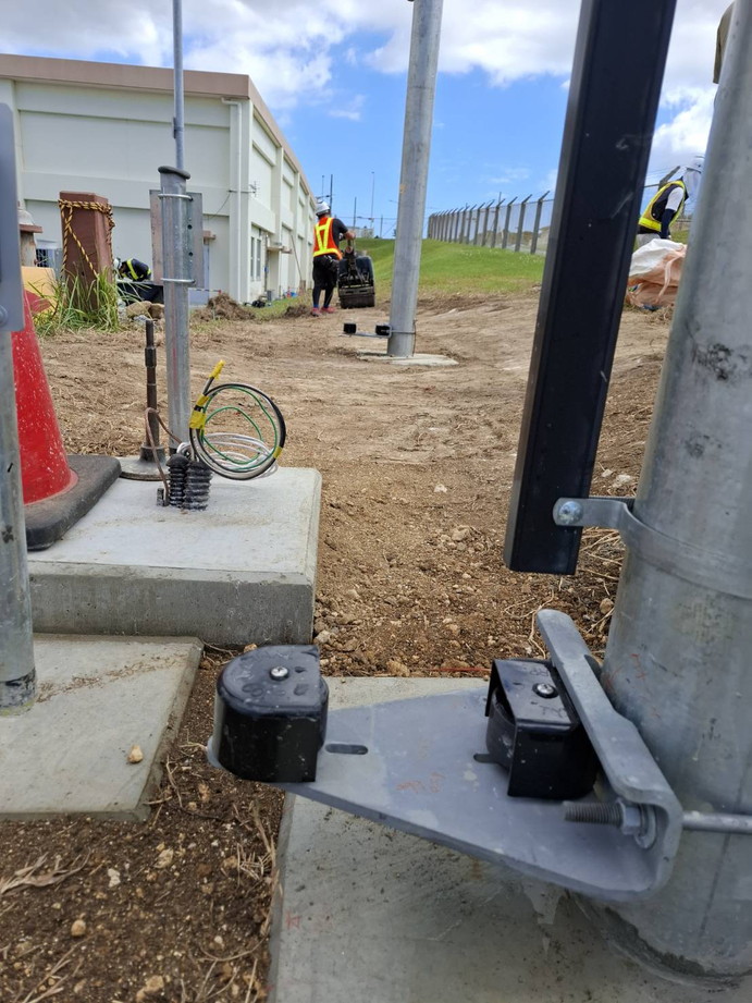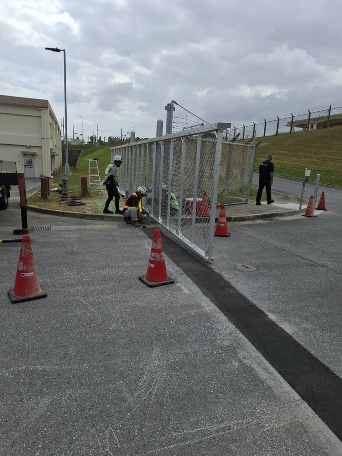 Projects (two complete) included installation of new gate posts, gate support hardware, motor operator, cantilevered vehicle slide gates, concrete pads, trenching, concrete encasements, asphalt cutting and renewal, UG & AG conduits for power and communications wiring from AVG to IDS panels & breaker panels, power and comm wiring and terminations, card readers and exit buttons.